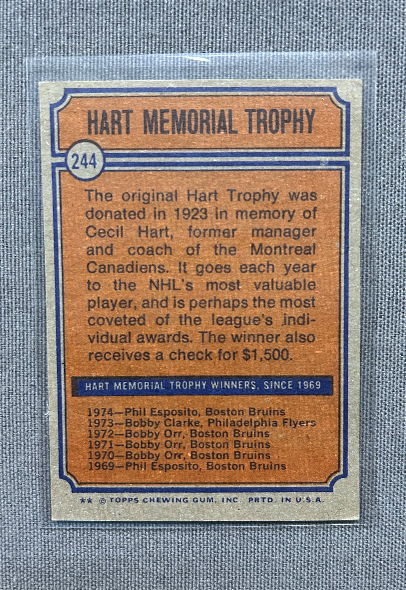 1973-74 Topps Hockey - Hart Memorial Trophy - Phil Esposito - Card #244 - HOF - see pics of actual card!!